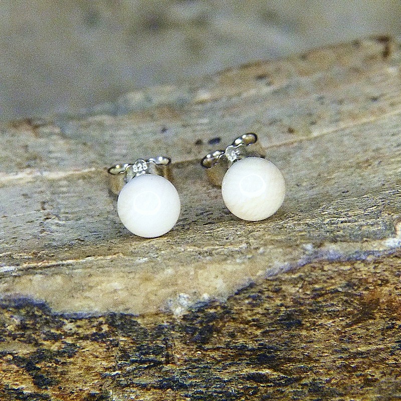 Kleine Kugelohrstecker aus hellem Mammut mit einem Durchmesser von ca. 6 mm.