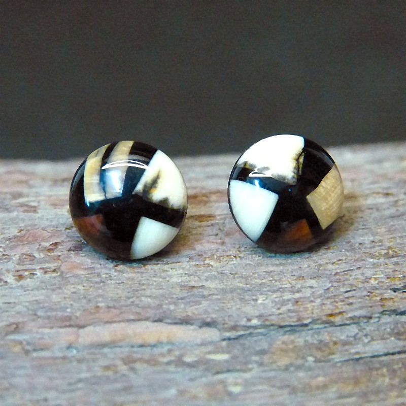 Runde Ohrstecker aus mehrfarbigem Mammut-Elfenbein mit schönere Struktur.