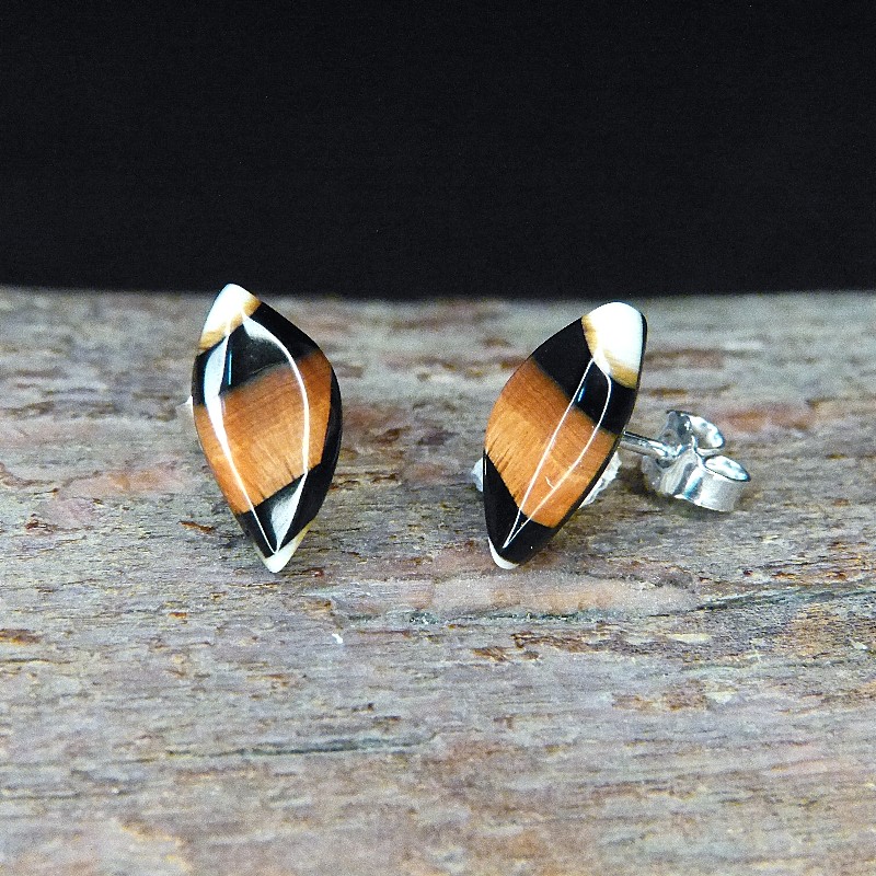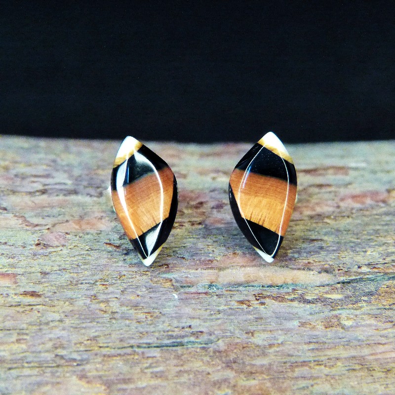Dreieckige Ohrstecker aus tollem dunkelbraunem Mammut-Elfenbein mit feiner Maserung.