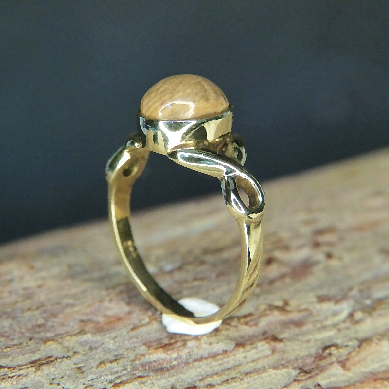 Goldring 333/- mit dunkelbraunem fossilem Mammutelfenbein und feiner Maserung.