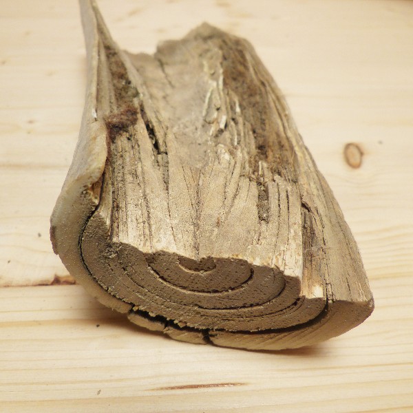 Schönes Endstück vom Mammutzahn mit grober Außenrinde. Im Inneren ist sehr schön der typische Aufbau des Zahns durch die einzelnen Wachstumsschübe erkennbar. Zwischen den Spakten findet man noch Reste von Tundramoos. Die Gesamtlänge misst ca. 20 cm bei einer Breite von ca. 7,5 - 8 cm. Sehr schön auch für Sammler oder als besonderes Geschenk. Kann auf Wunsch auch auf einem Sockel montiert werden.