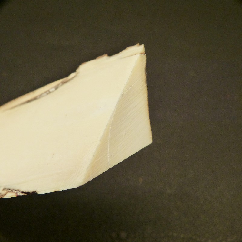 Sie erhalten den Abschnitt eines fossilen Mammutzahns mit feiner Maserung und heller Färbung.