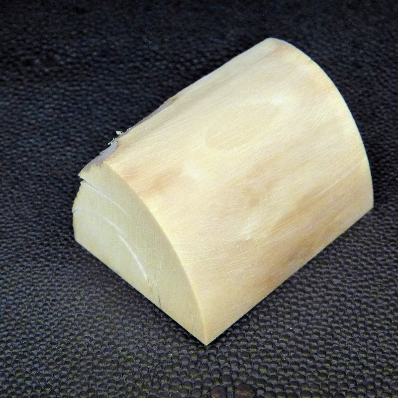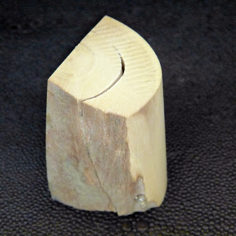 Abschnitt aus cremigem Mammut-Elfenbein aus dem Kern mit diversen Rissbildungen.