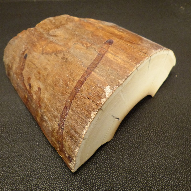 Sie erhalten den Abschnitt eines fossilen Mammutzahns mit schöner Rindenstruktur und feiner Maserung.