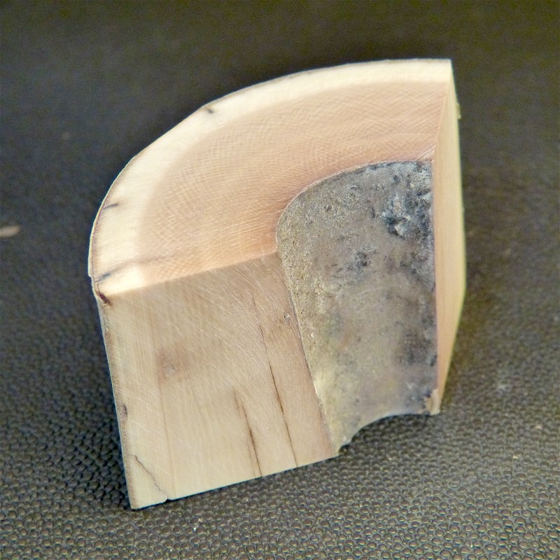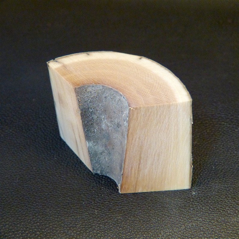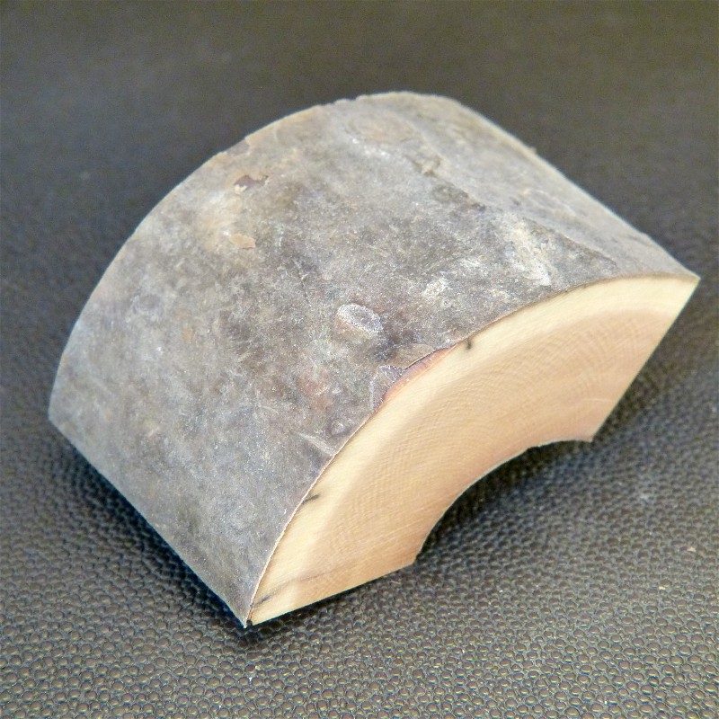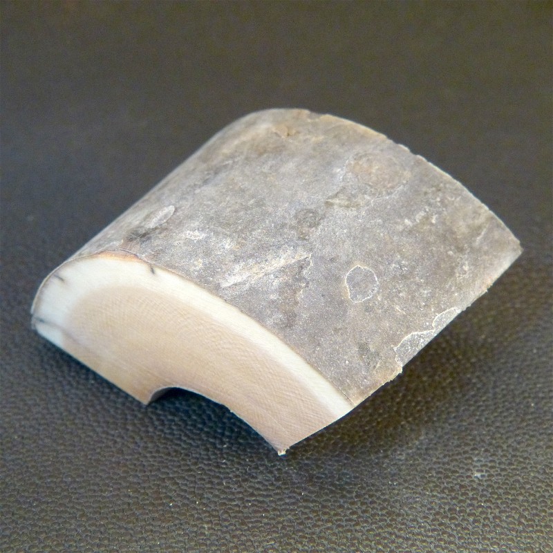 Sie erhalten einen bogenförmigen Abschnitt eines bräunlichen Mammutzahns mit ausgeprägter Maserung und schöner Rindenfärbung in trockener Qualität.