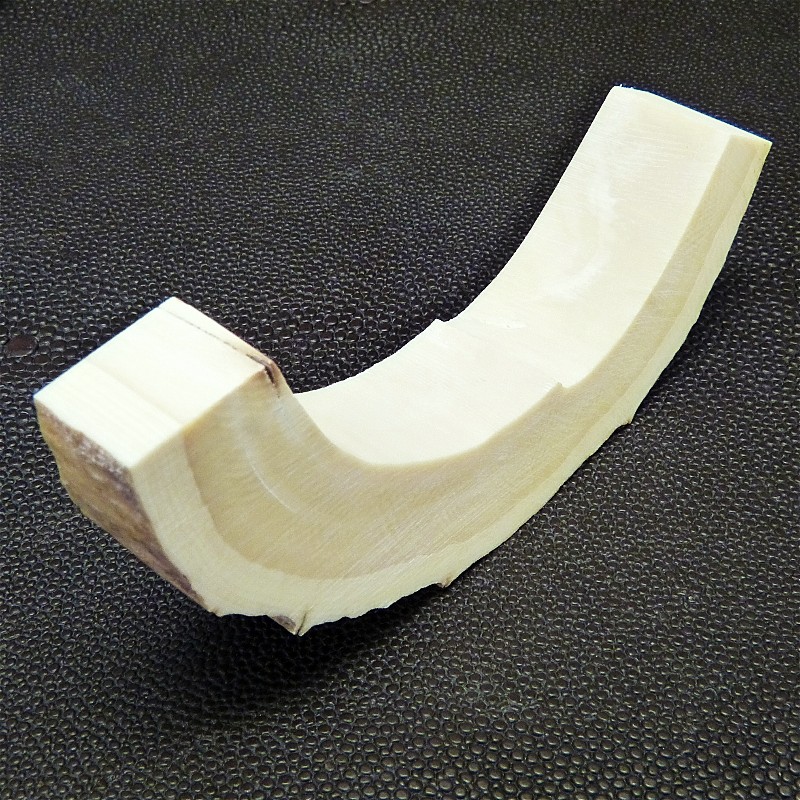 Sie erhalten ein Bogensegment aus hellem Mammut-Elfenbein mit Rinde und leichten Rissbildungen an einem Ende. (siehe Fotos)