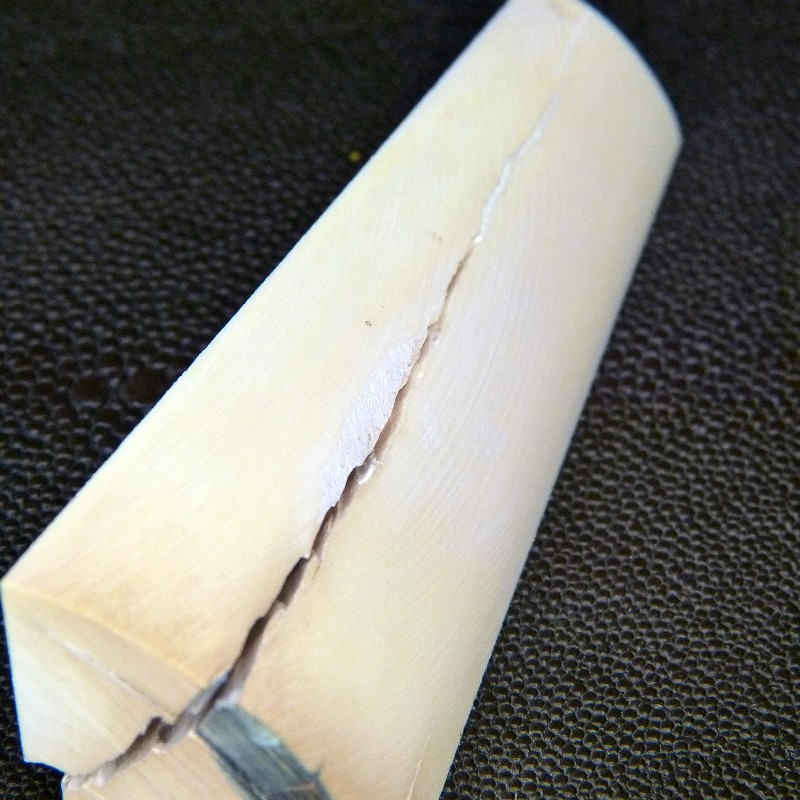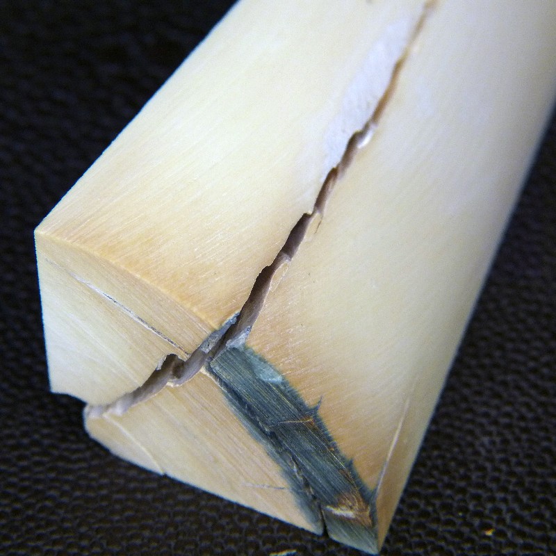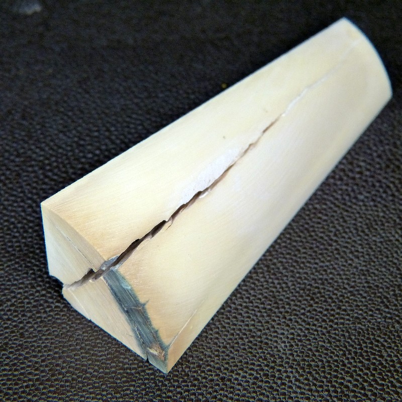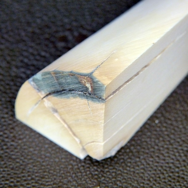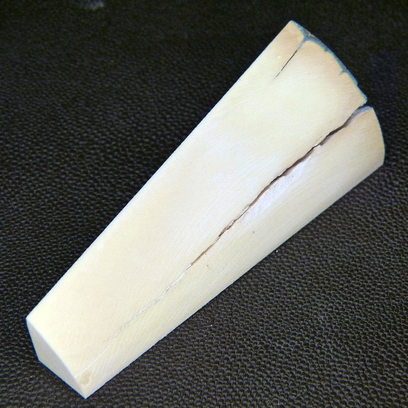 Mammut-Dreikant mit cremigen und bläulichen Färbungen und feiner Maserung.