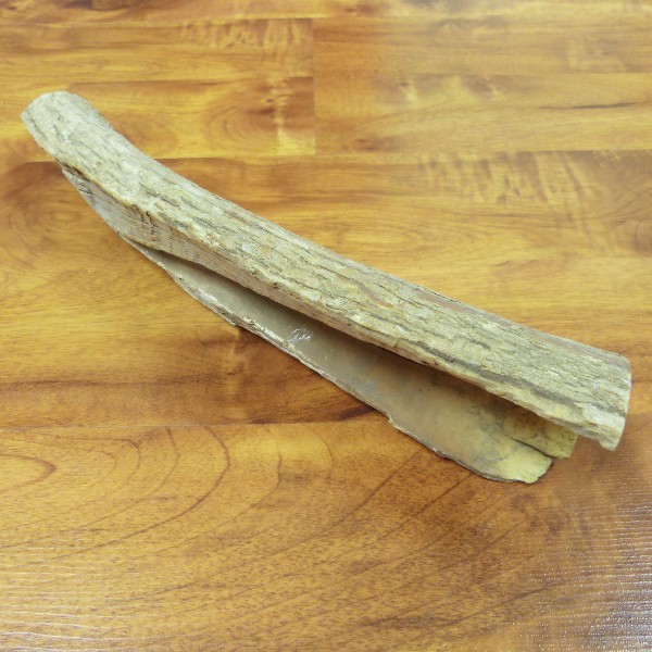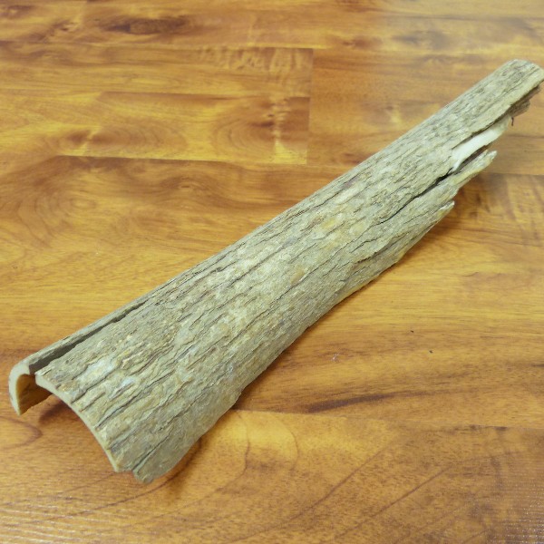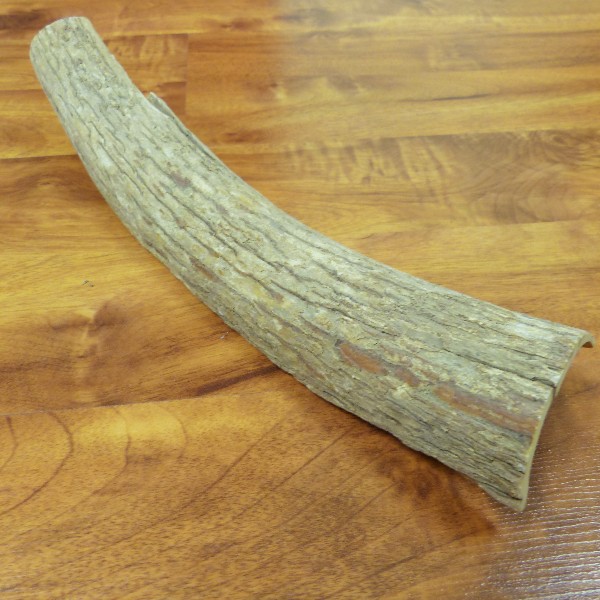 Ca. 37 cm langes Rindenstück vom Mammutzahn mit einer Breite von ca. 6,3 cm. Schön zu erkennen ist der konische Aufbau des Zahns, der durch die einzelnen Wachstumsschübe entstanden ist. Gut zur Schmuckherstellung geeignet.