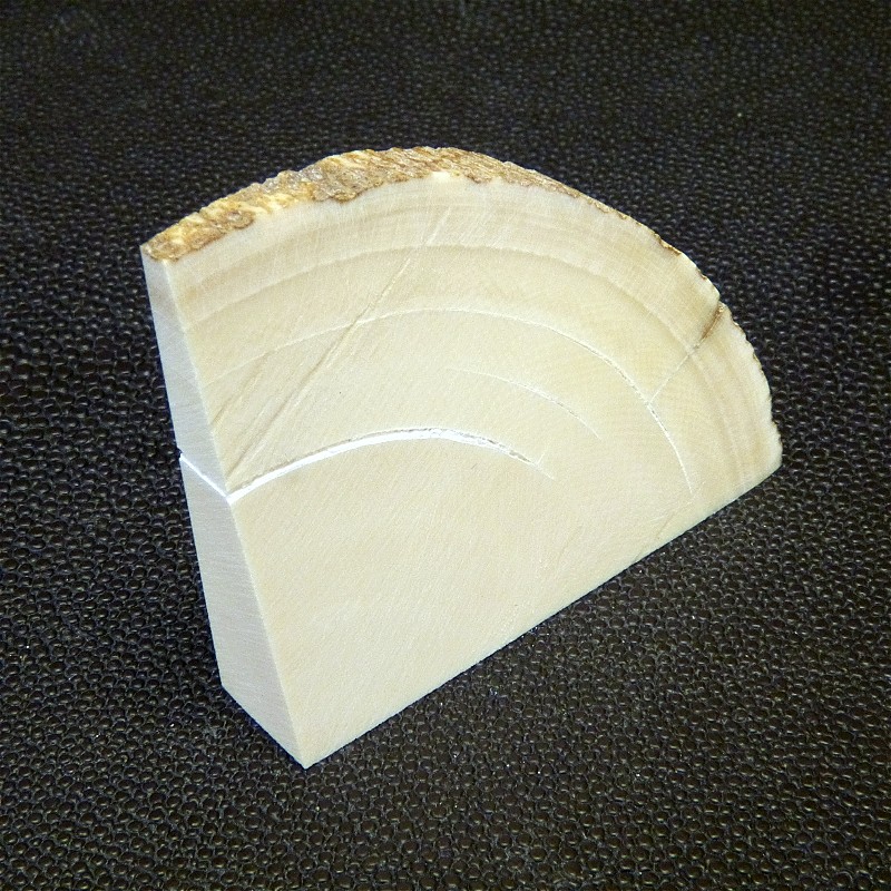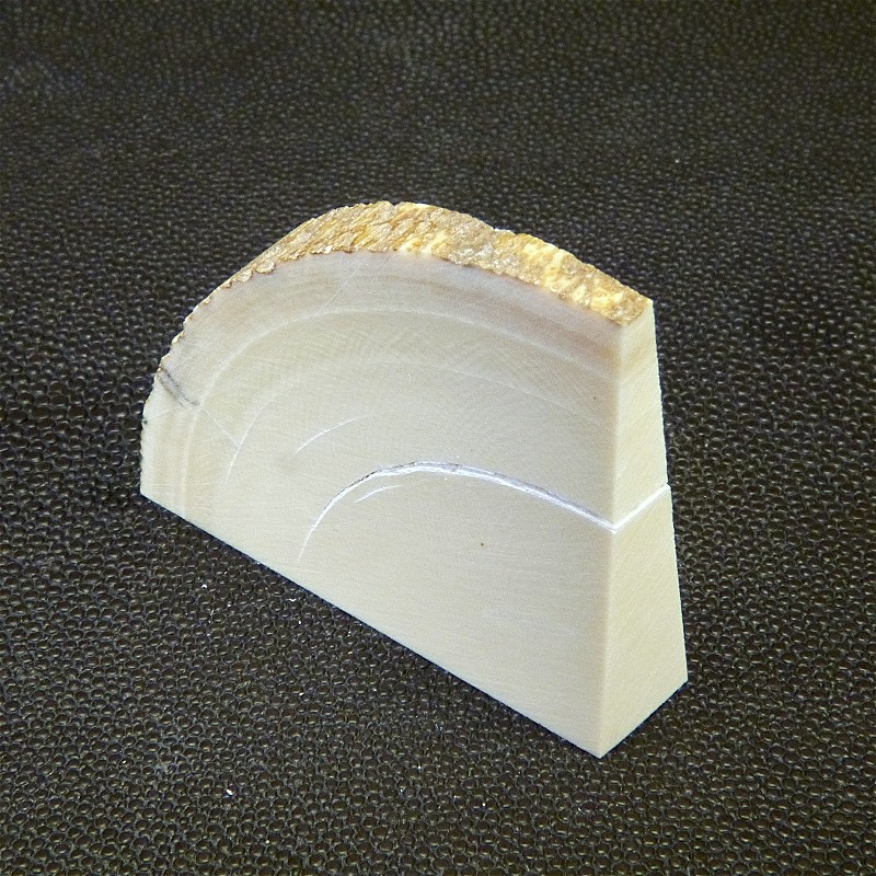 Sie erhalten eine Keilscheibe aus hellem Mammut-Elfenbein mit Rissbildungen in trockener Qualität. (siehe Fotos)