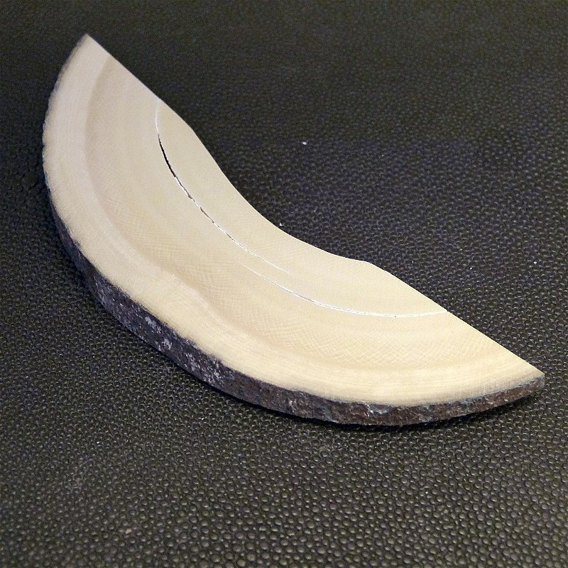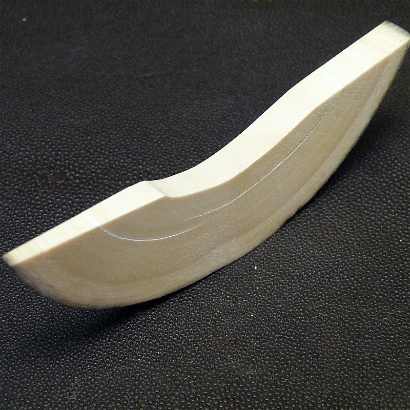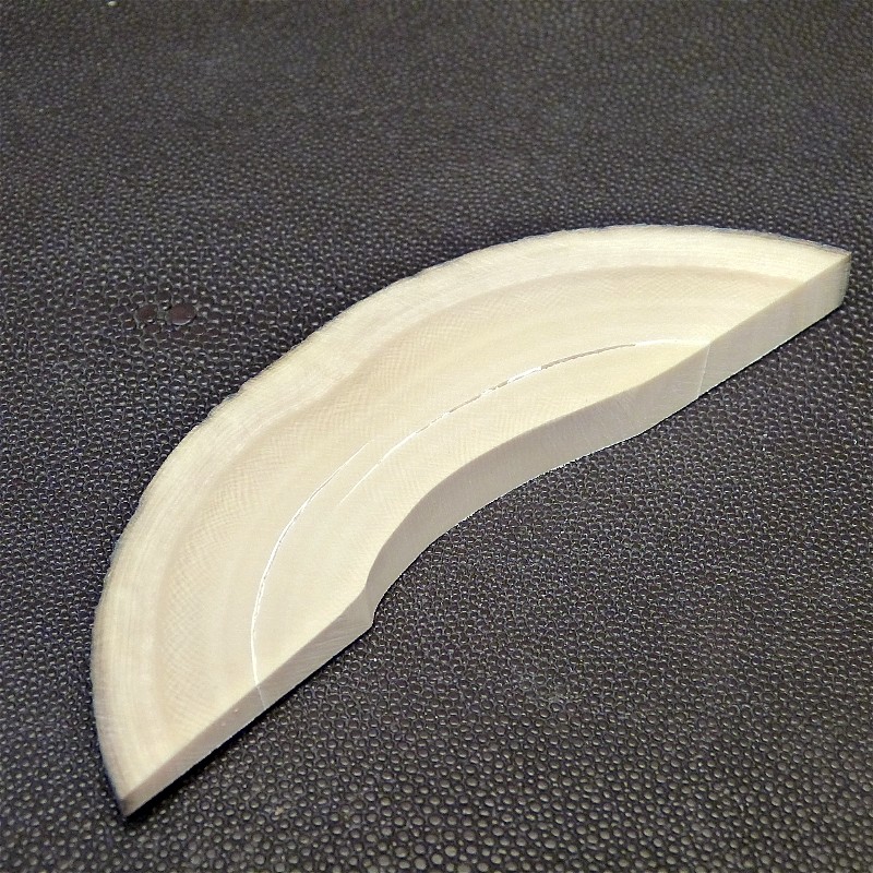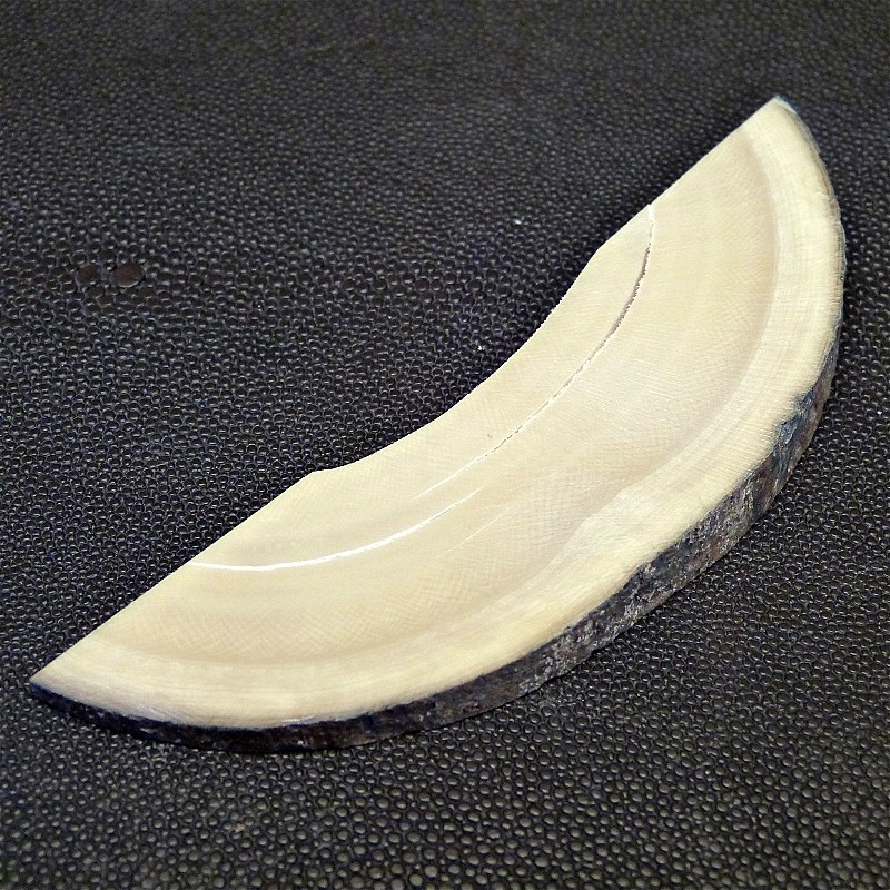 Sie erhalten ein Bogensegmentt aus cremefarbenem Mammutelfenbein mit natürlicher Rindenstruktur und folgenden Maßen: