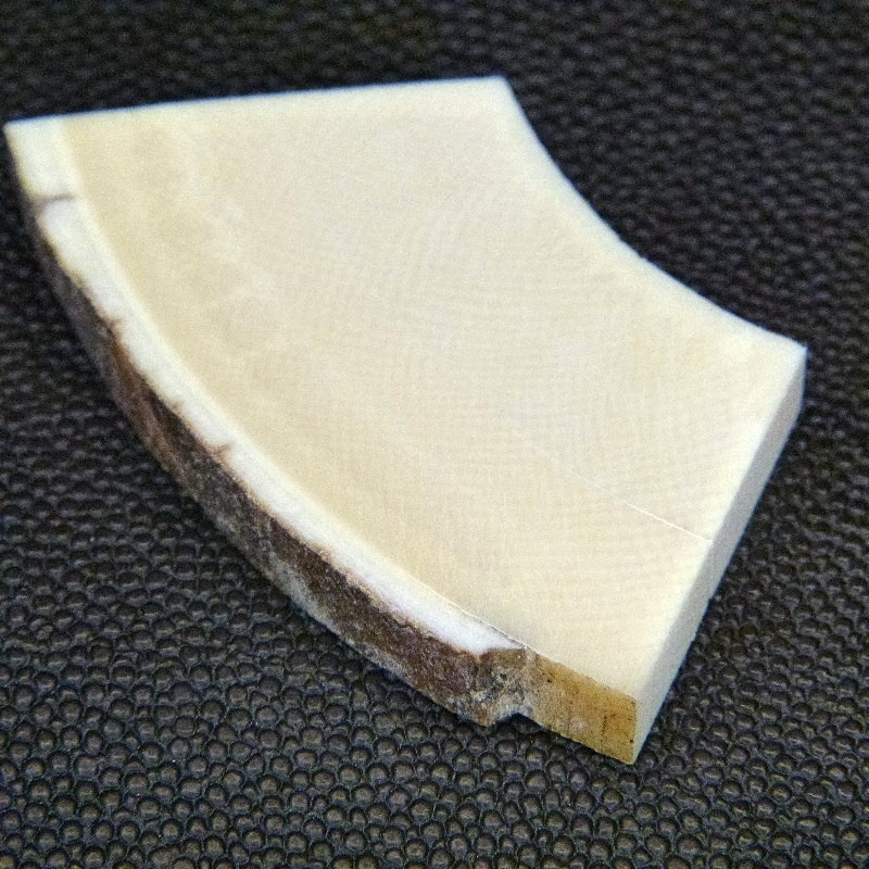 Sie erhalten ein Bogenstück aus hellem Mammutelfenbein mit natürlicher Rindenfärbung und folgenden Maßen: