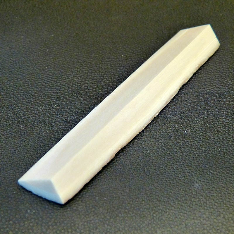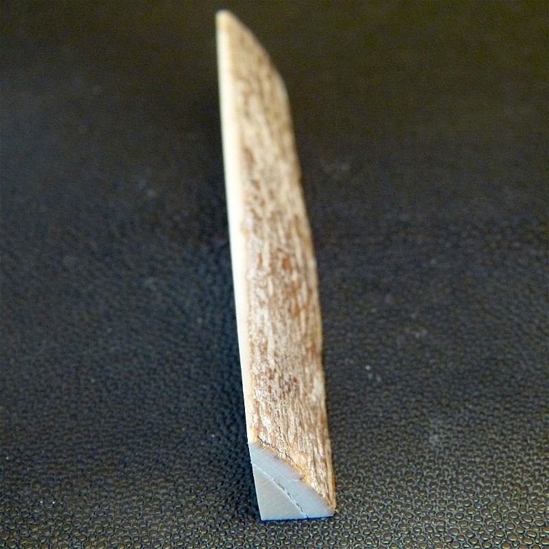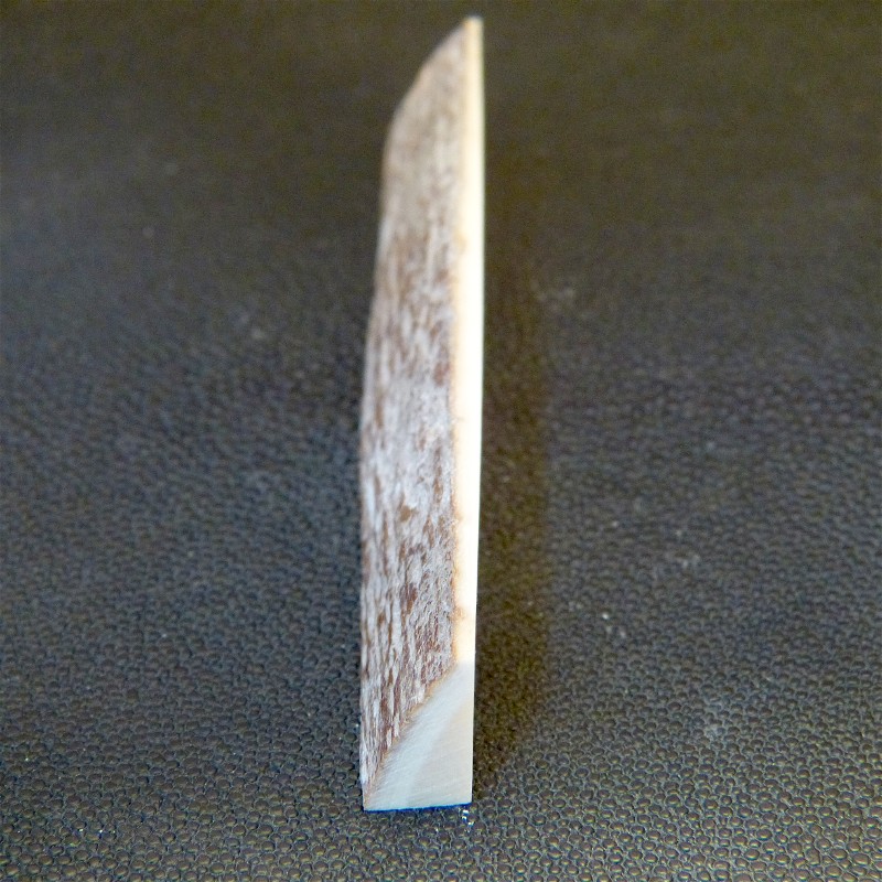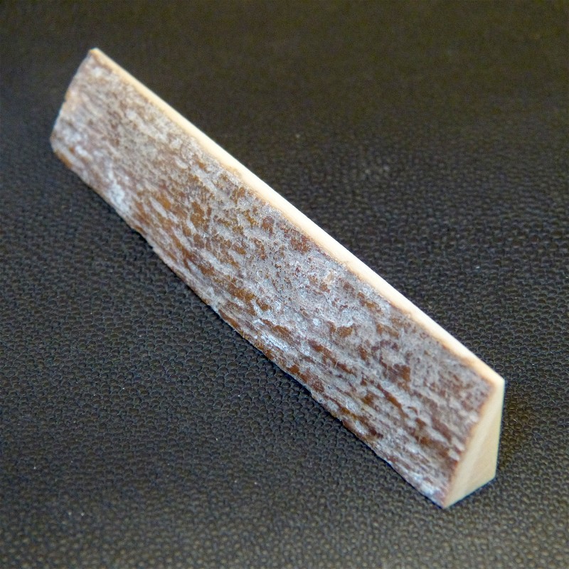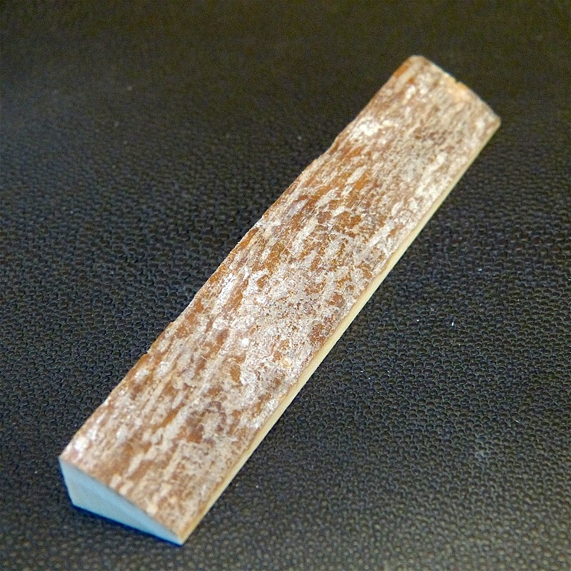 Sie erhalten einen Dreikant-Zuschnitt aus hellem Mammut-Elfenbein mit Rindenstruktur in trockener Qualität.