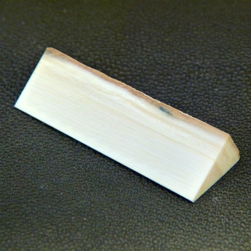 Sie erhalten einen Dreikant-Zuschnitt aus hellem Mammut-Elfenbein mit Rindenstruktur in trockener Qualität.