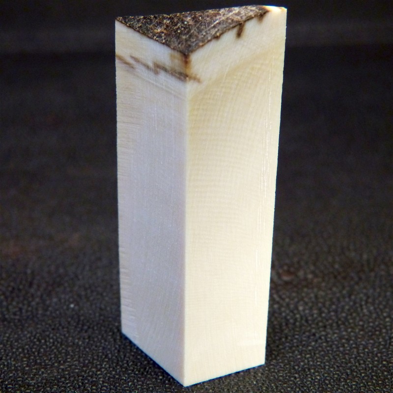 Sie erhalten einen quer geschnittenen Dreikant aus hellem, trockenem Mammutelfenbein mit folgenden Maßen: