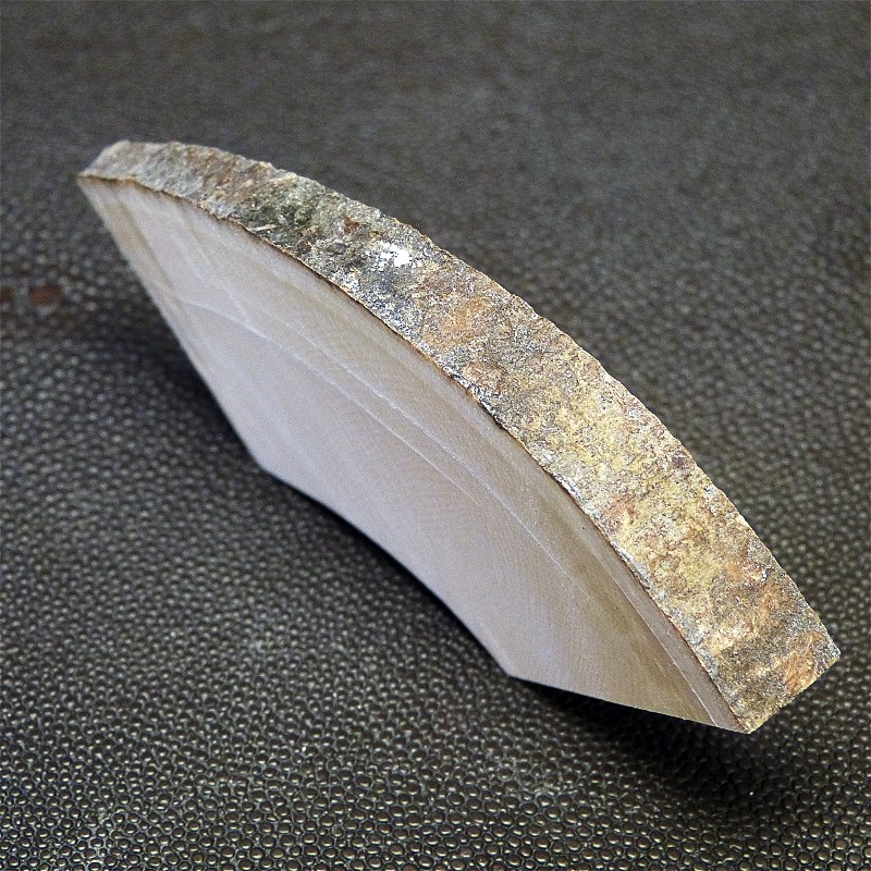 Sie erhalten einen keilförmigen Zuschnitt aus hellem Mammutelfenbein mit ausgeprägter Maserung und folgenden Maßen: