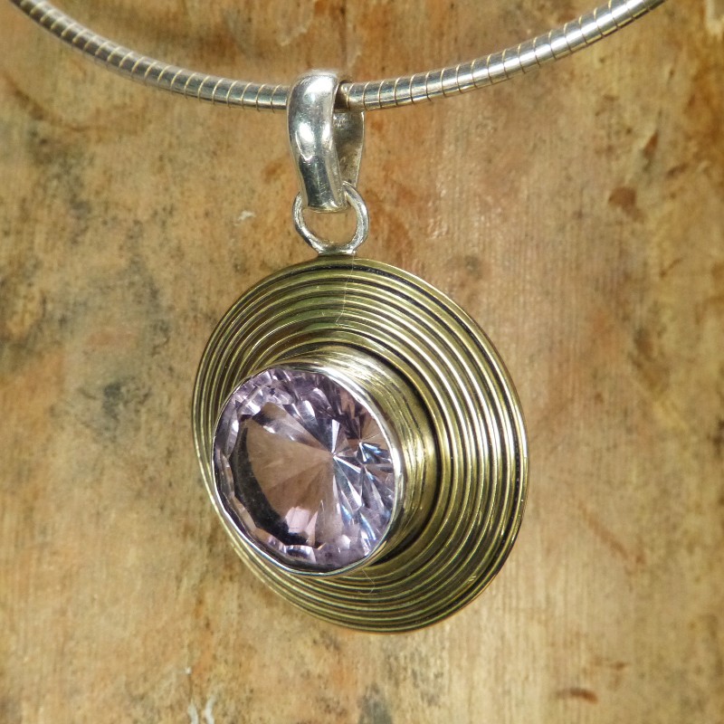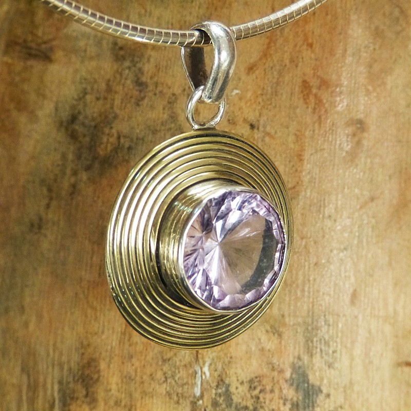 Silberanhänger 925/- mit Teilvergoldungen und facettiertem Amethyst mit einer Größe von ca. 14mm.