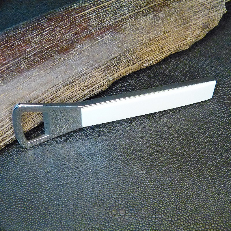 Flaschenöffner/Kapselheber aus silberfarbigem Metall, "Made in Solingen", belegt mit hellem Mammutelfenbein.