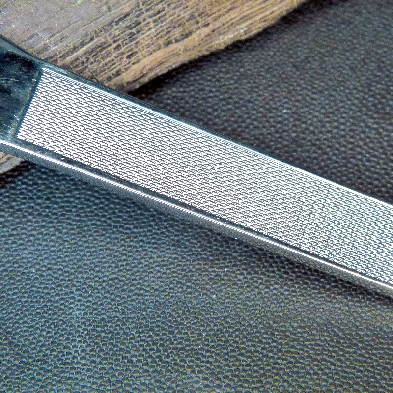 Gesamtlänge ca. 140mm, Breite am Griff ca. 18mm, vorne ca. 40mm, Stärke ca. 7mm.