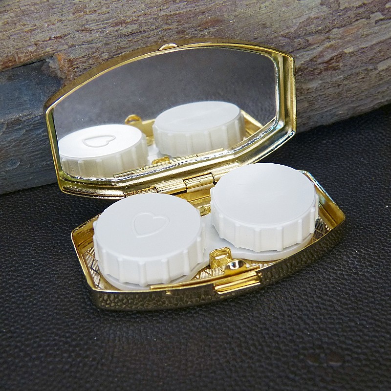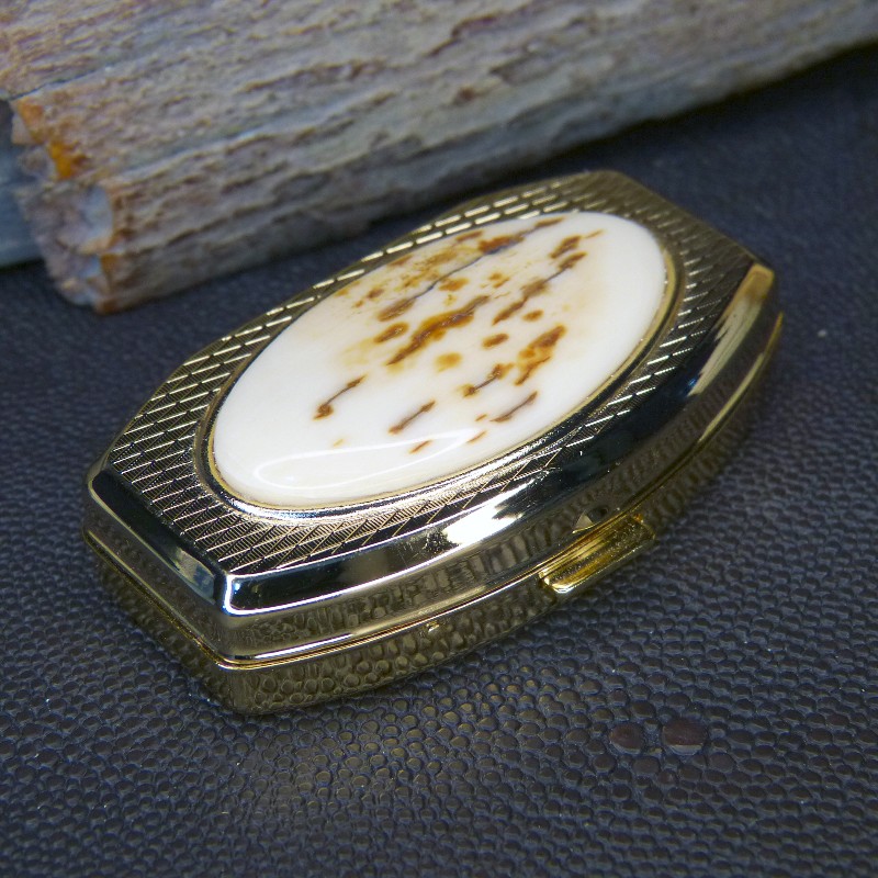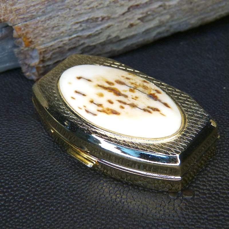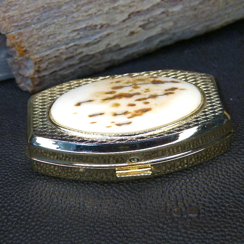 Kontaktlinsenbehälter, belegt mit cremefarbenem Mammut-Elfenbein mit schöner Rindenfärbung.