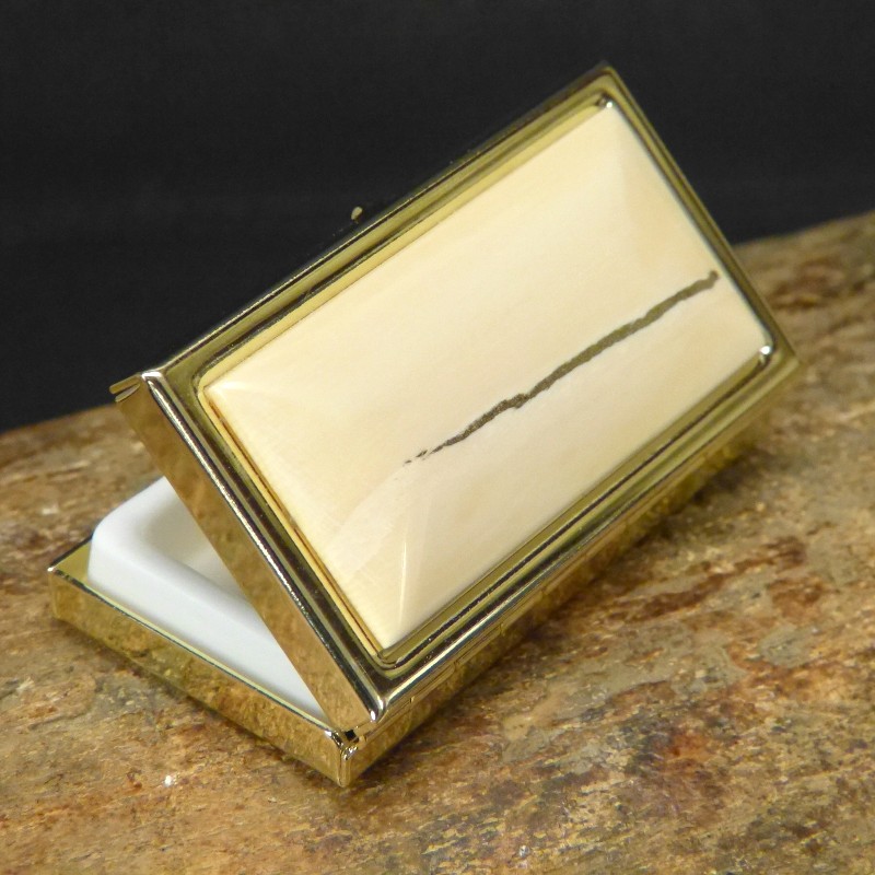 Hartvergoldete Pillendose mit 2 Fächern, belegt mit einer Platte aus cremefarbenem Mammutelfenbein.