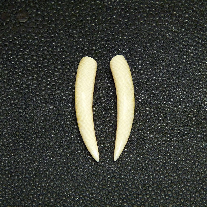 Sie erhalten 1 Paar (2 Stück) Stoßzähne aus Mammutelfenbein mit einer Länge von ca. 32 mm.