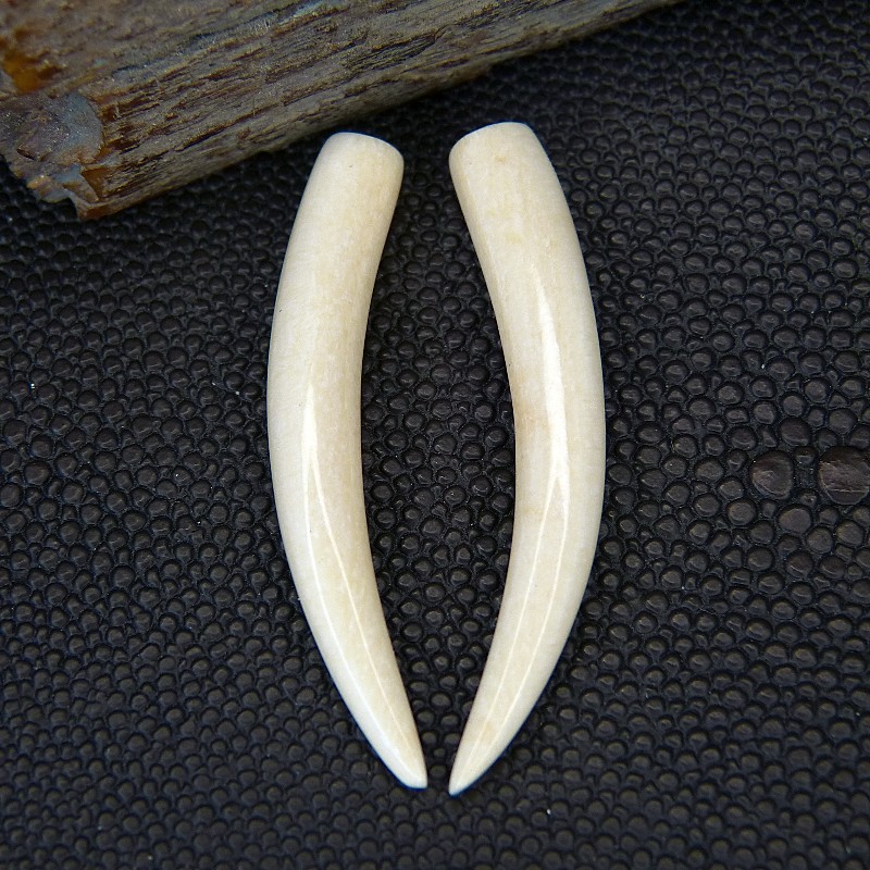 Sie erhalten 1 Paar (2 Stück) Stoßzähne aus cremigem Mammutelfenbein mit einer Länge von ca. 45 mm.