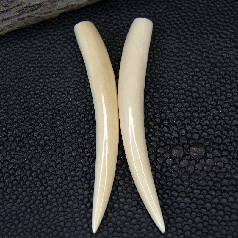 Sie erhalten 1 Paar (2 Stück) Stoßzähne aus cremigem Mammutelfenbein mit einer Länge von ca. 55 mm.