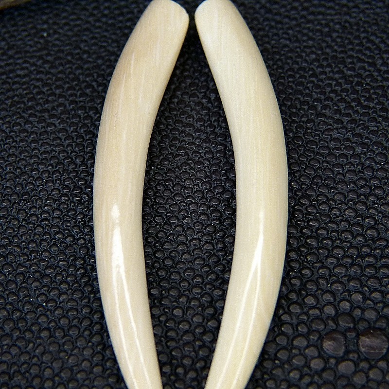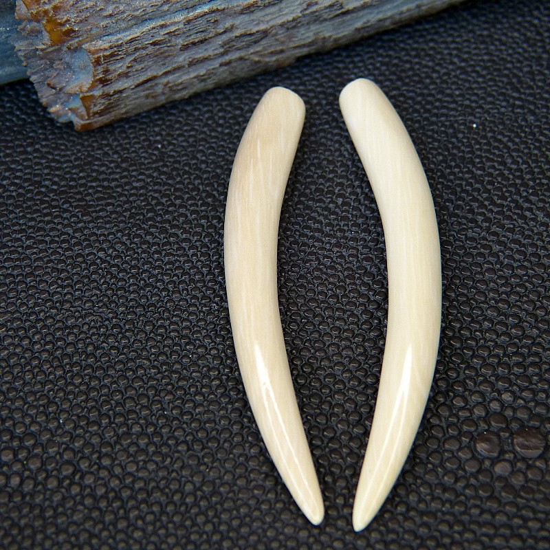 Sie erhalten 1 Paar (2 Stück) Stoßzähne aus cremigem Mammutelfenbein mit einer Länge von ca. 60 mm.