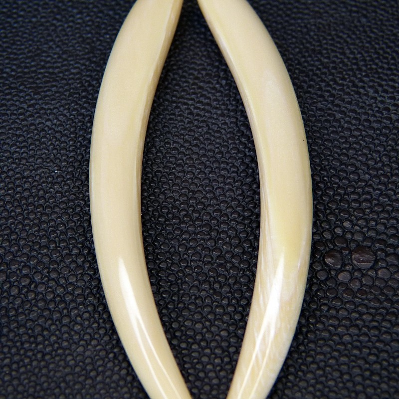 Sie erhalten 1 Paar (2 Stück) Stoßzähne aus cremigem Mammutelfenbein mit einer Länge von ca. 85 mm.