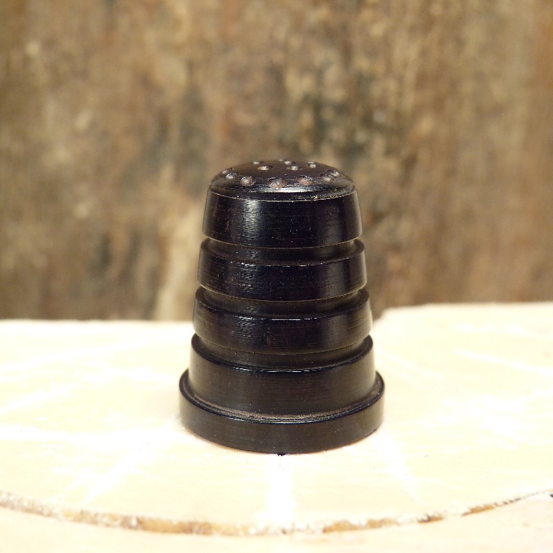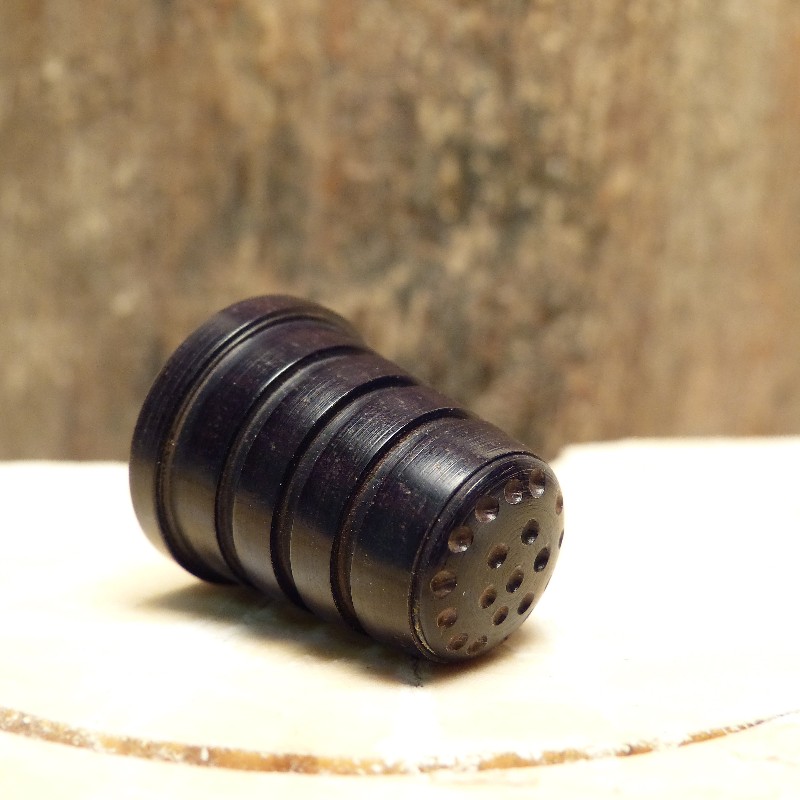 Fingerhut aus Ebenholz mit 3 Rillen. Höhe ca. 25mm, Durchmesser ca. 21mm.