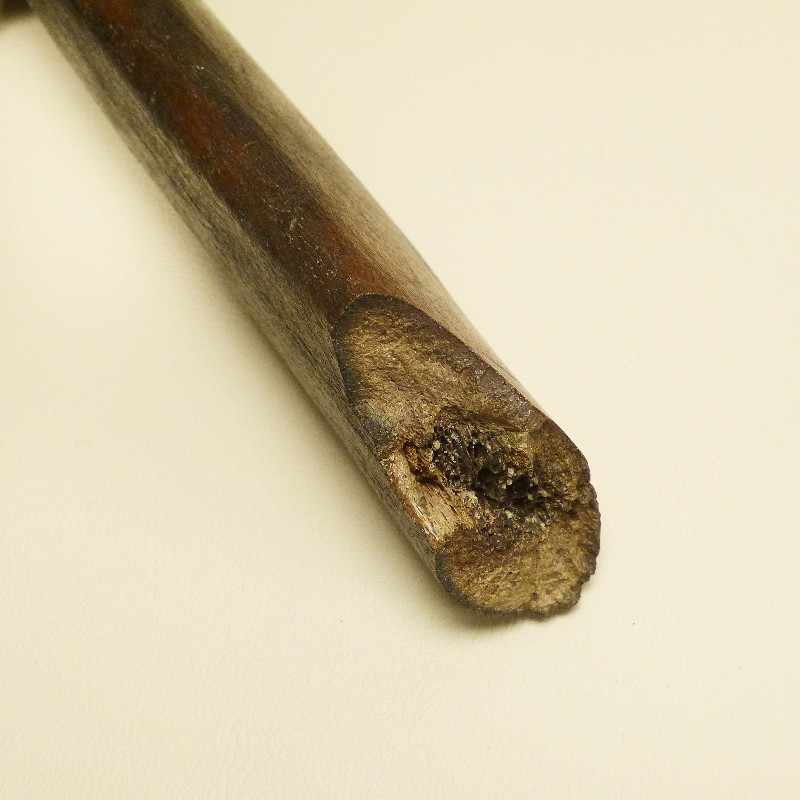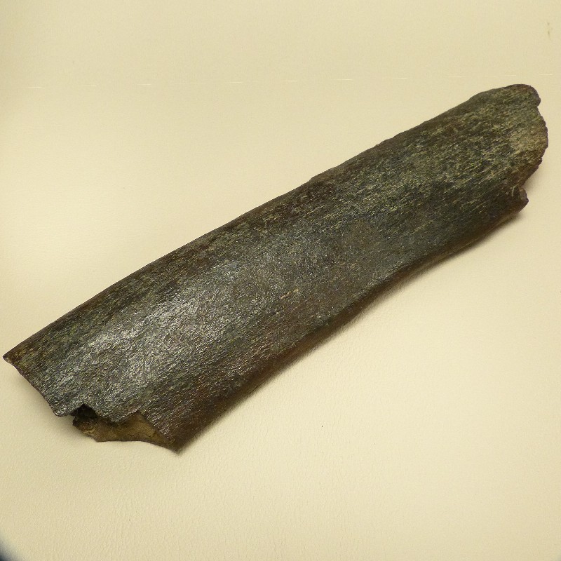 Ca. 25 cm langes Fragment einer Mammut-Rippe mit einer Breite von ca. 6 cm und einer Dicke von ca. 3,2 cm.