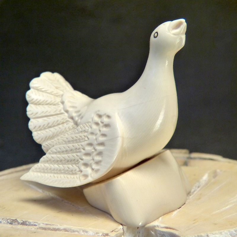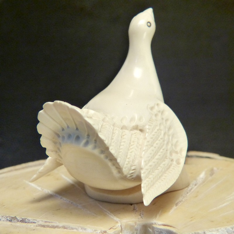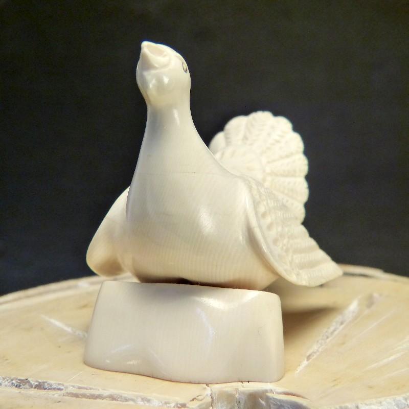 Auerhahn mit Sockel aus hellem Mammut-Elfenbein mit schöner Maserung.