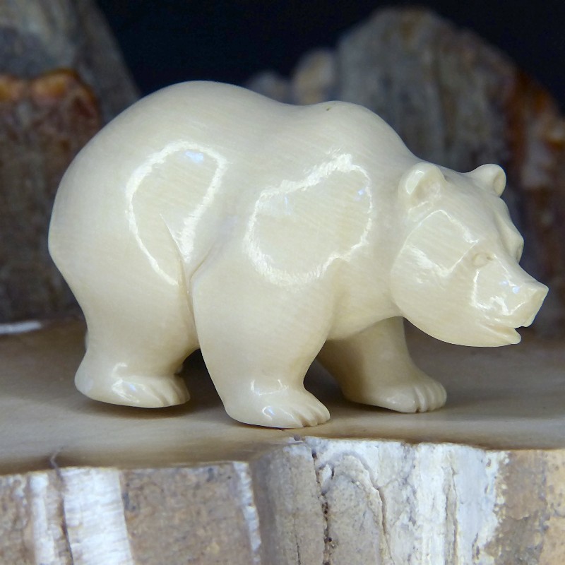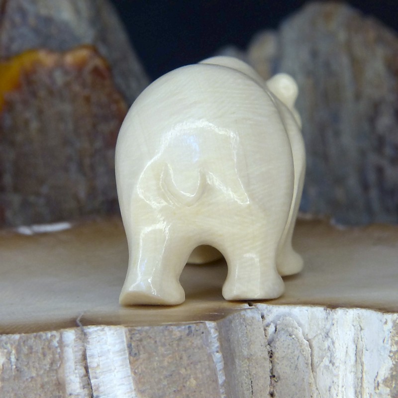 Bär, geschnitzt aus cremigem Mammutelfenbein mit schönen Wasserflecken auf dem Rücken.