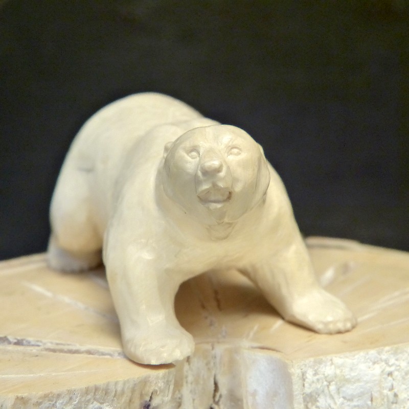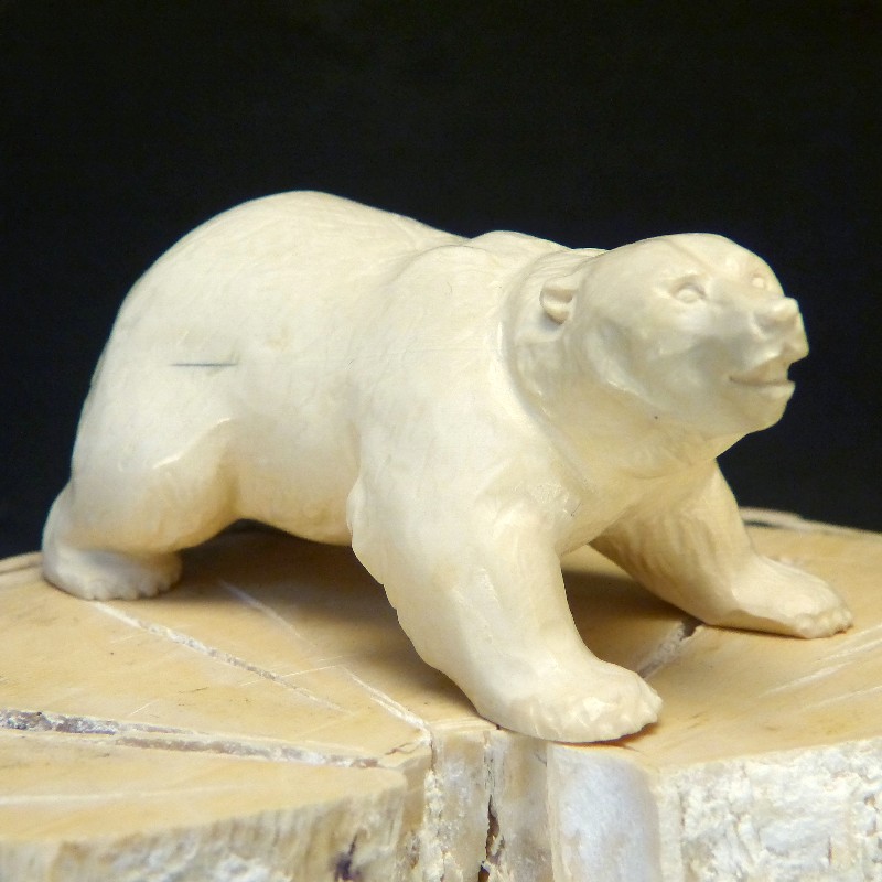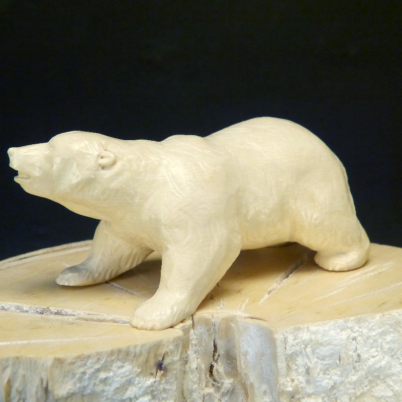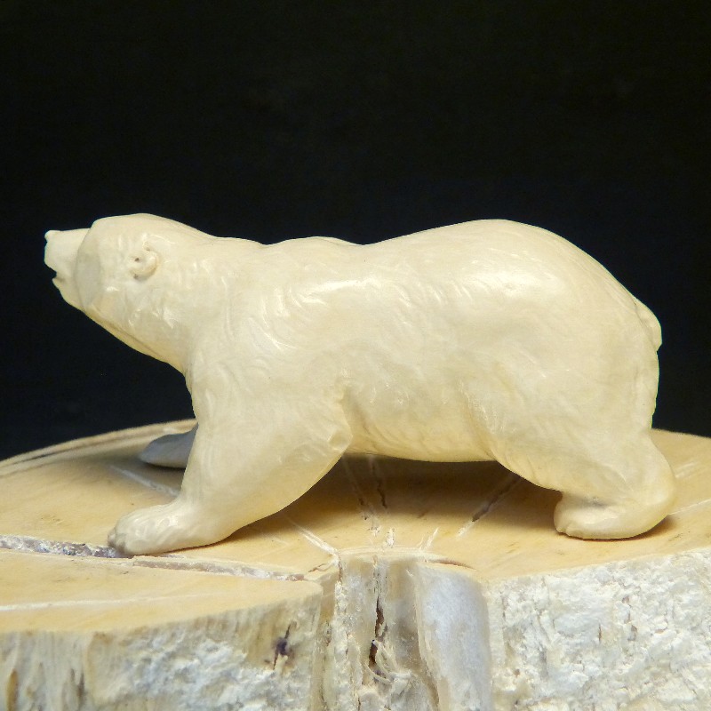 Eisbär aus leicht cremefarbenem fossilem Mammut-Elfenbein mit leicht polierter Oberfläche.