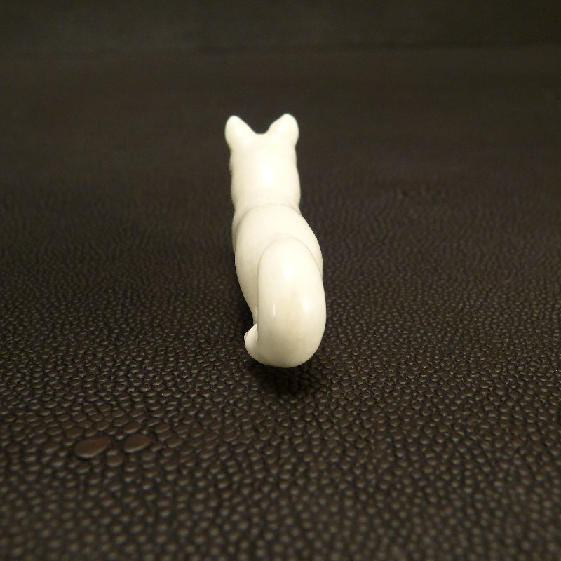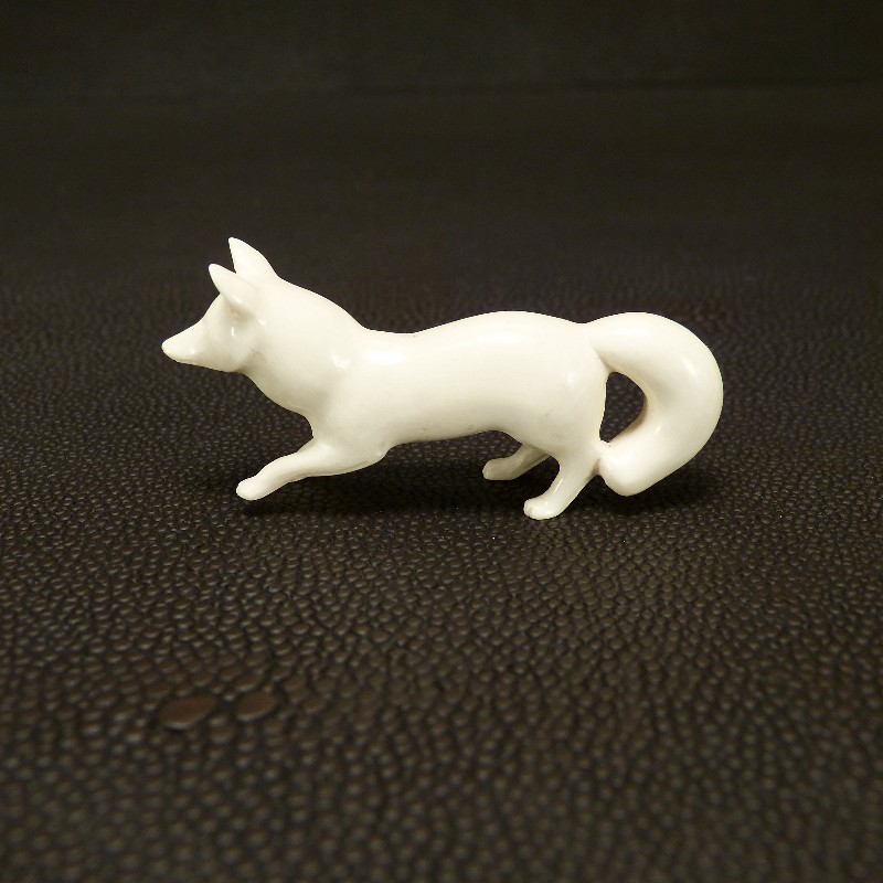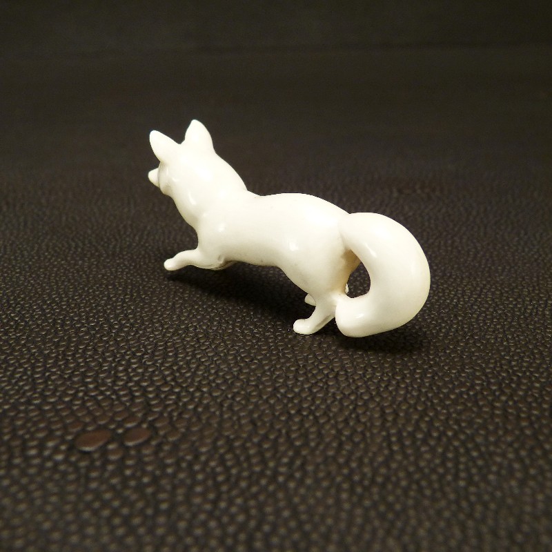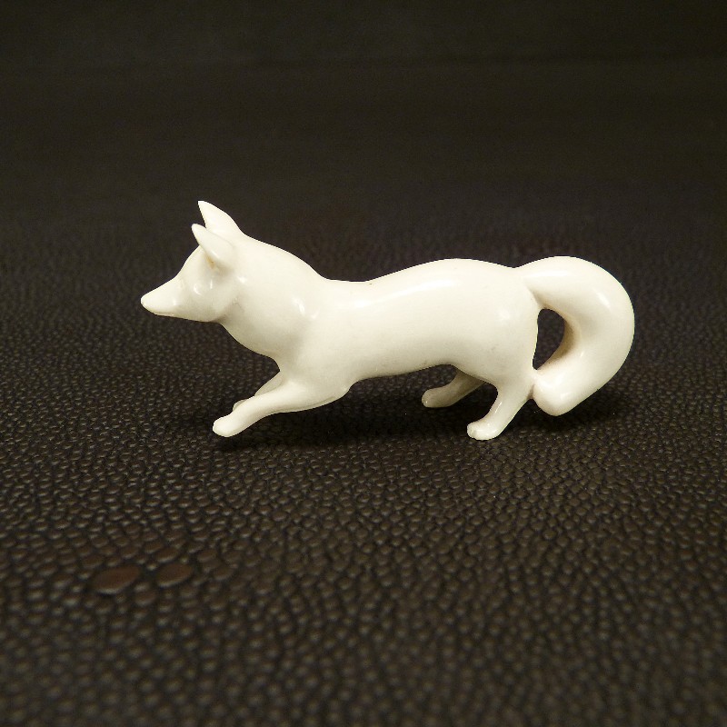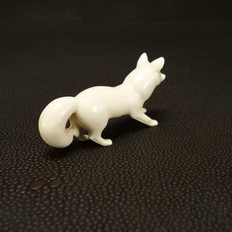Detailliert geschnitzter Fuchs aus hellem Mammut-Elfenbein mit feiner Maserung. Länge ca. 52mm, Breite ca. 11mm, Höhe ca. 22mm.
