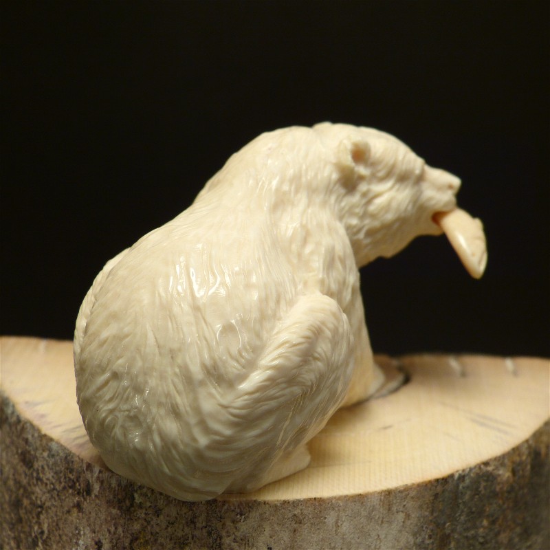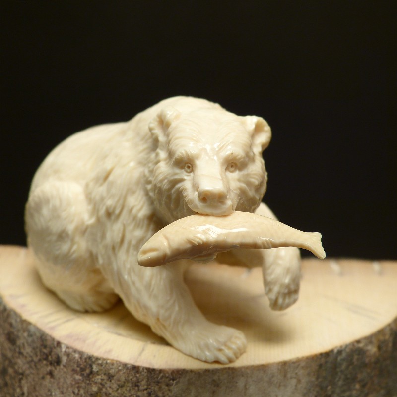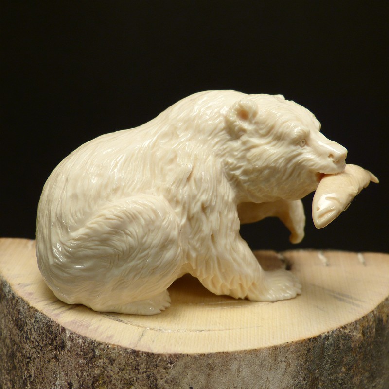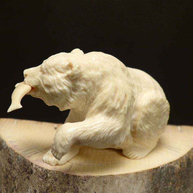 Feinst ausgearbeiter Grizzly-Bär, gefertigt aus hellem, massivem Mammut-Elfenbein. Diese Qualität wird nur zu