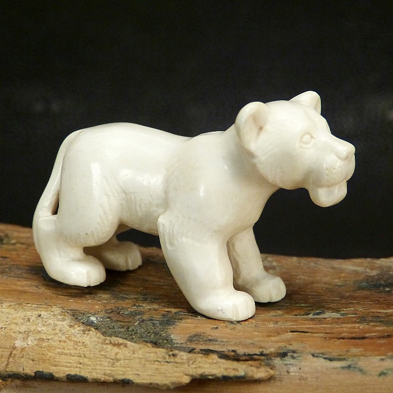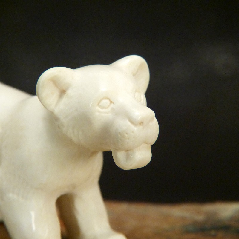 Junger Löwe, geschnitzt aus hellem Mammutelfenbein mit feiner Maserung.