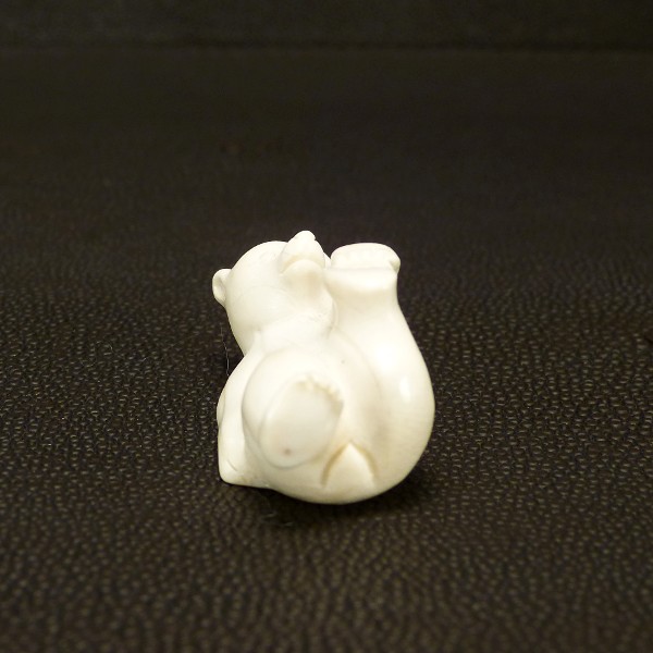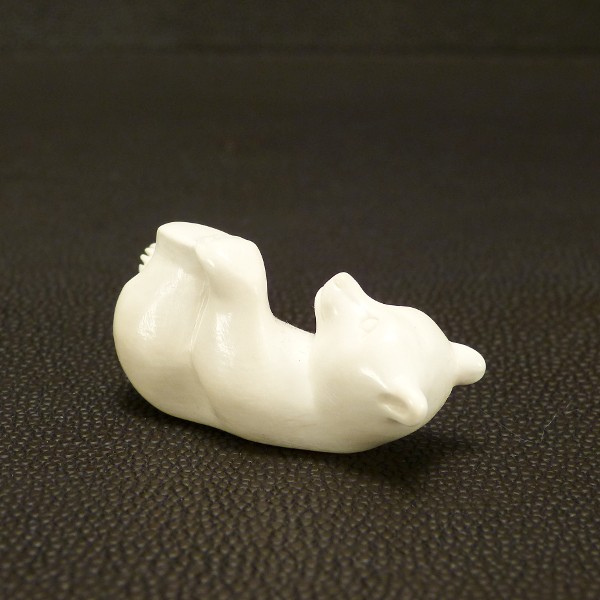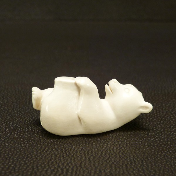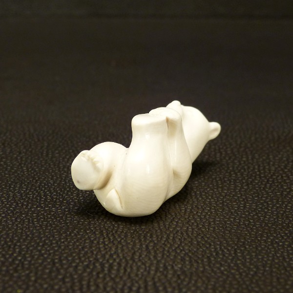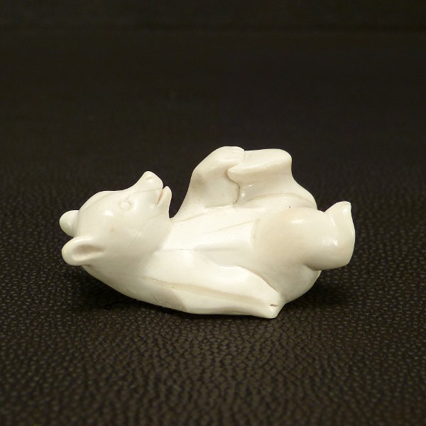Kleiner Liegender Bär aus hell-cremigem, fossilem Mammut-Elfenbein mit einer Länge von ca. 40mm, einer Breite von ca. 18mm und einer Höhe von c. 21mm.