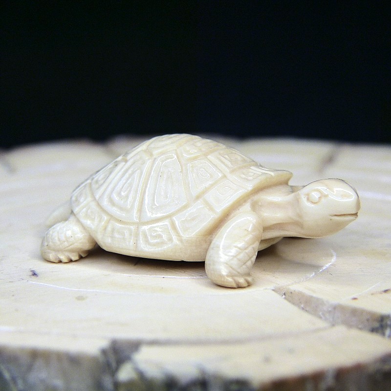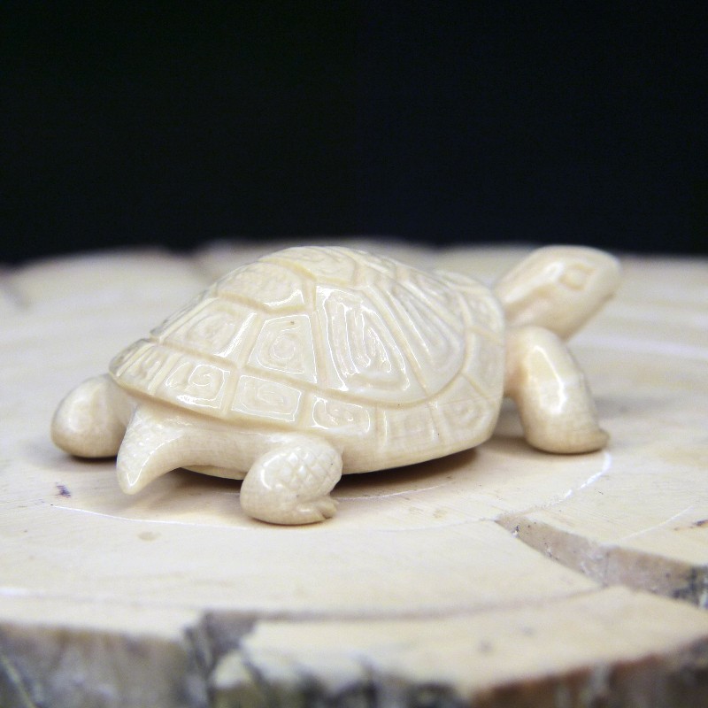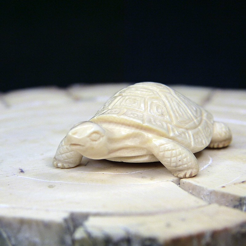Geschnitzte Schildkröte aus cremigem Mammut-Elfenbein mit leichten Färbungen und schön ausgearbeitetem Panzer.