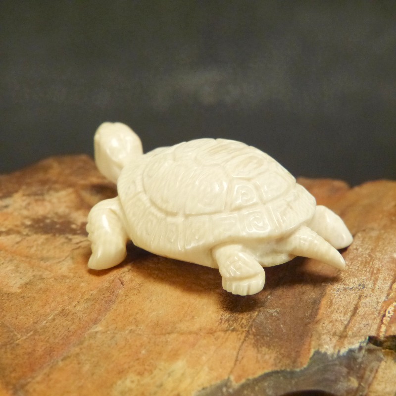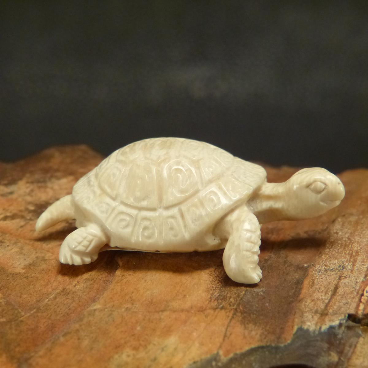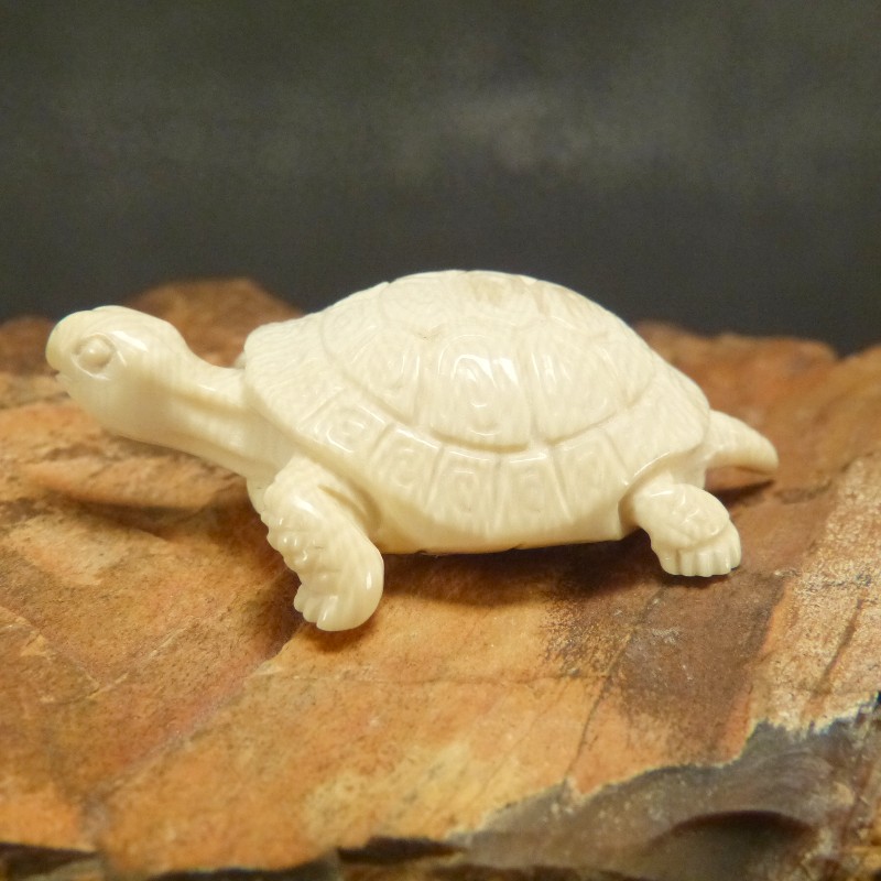 Geschnitzte Schildkröte aus Mammut-Elfenbein mit starker Maserung und schön ausgearbeitetem Panzer.