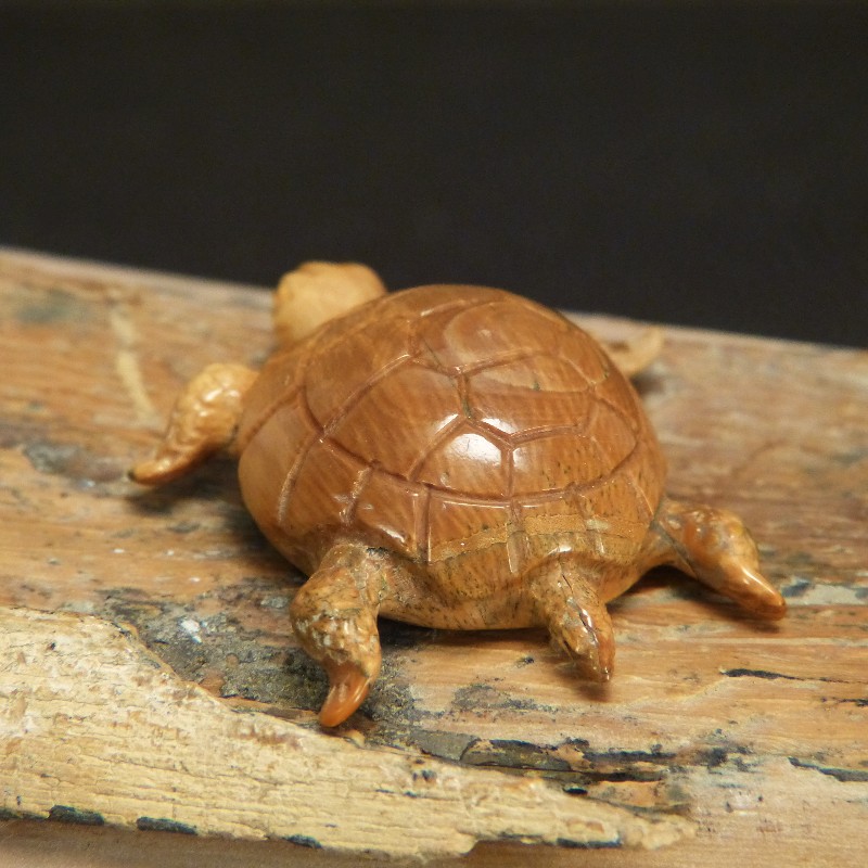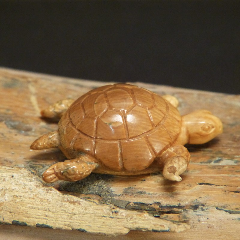 Geschnitzte Schildkröte aus seltenem dunkelbraunem Mammut-Elfenbein mit schöner Maserung.