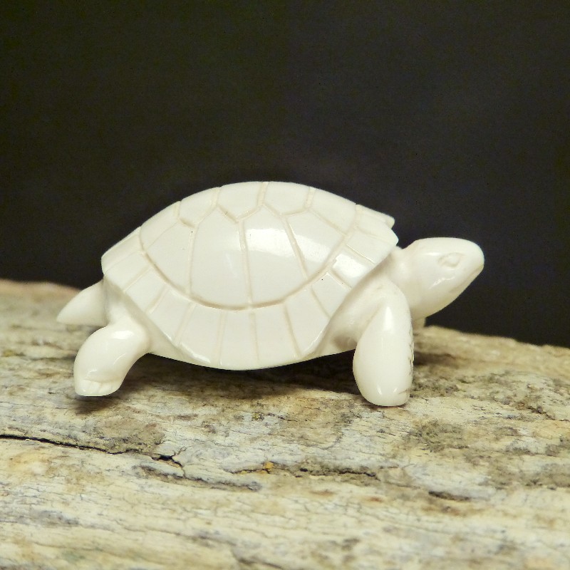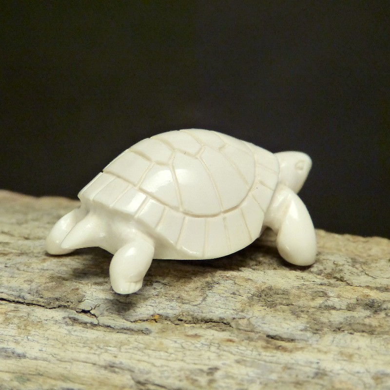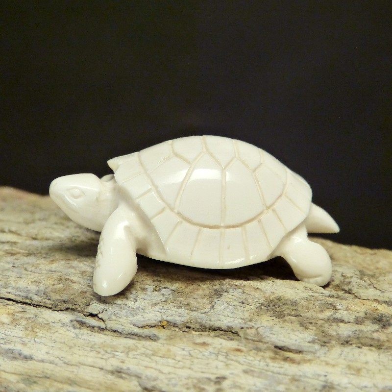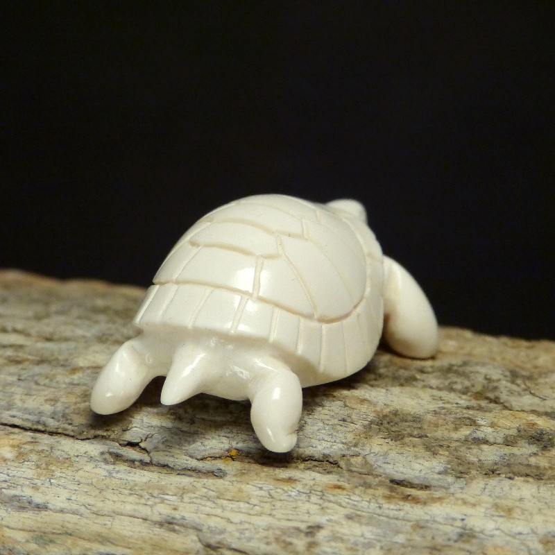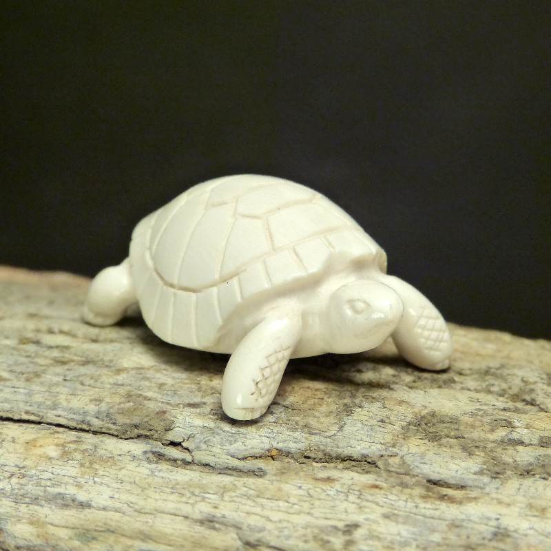 Fein geschnitzte Schildkröte aus hellem Mammut-Elfenbein mit feiner Maserung.