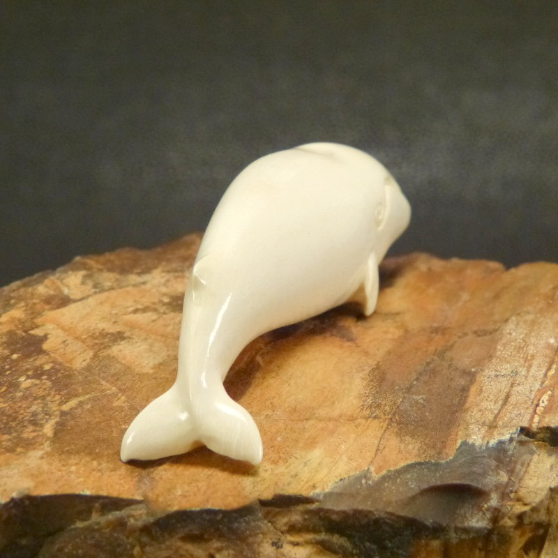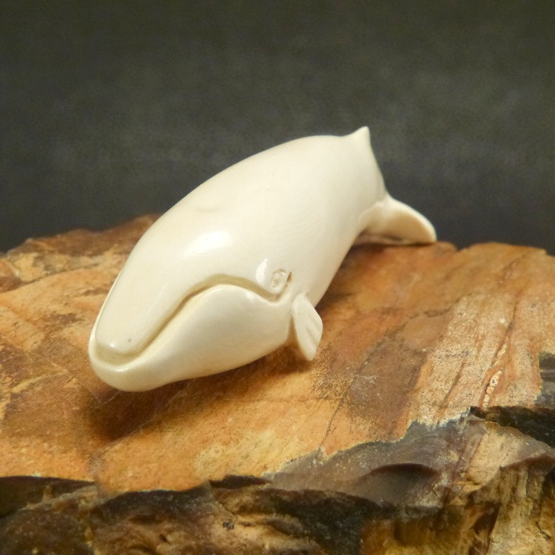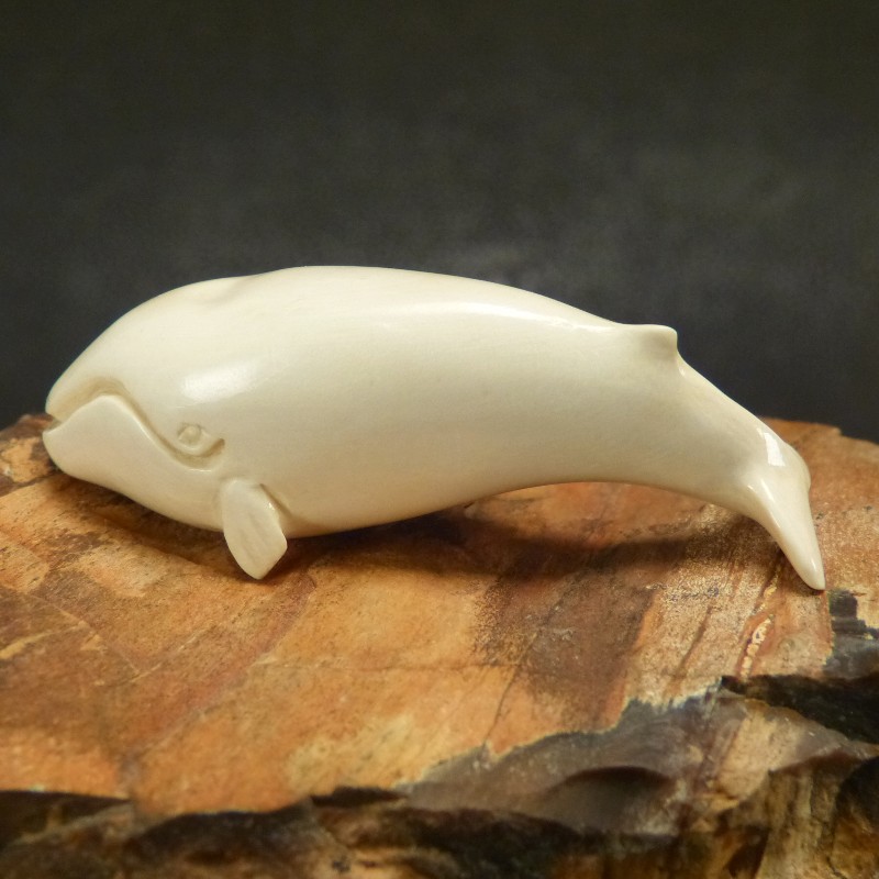 Wal aus cremefarbenem Mammutelfenbein mit feiner Maserung.