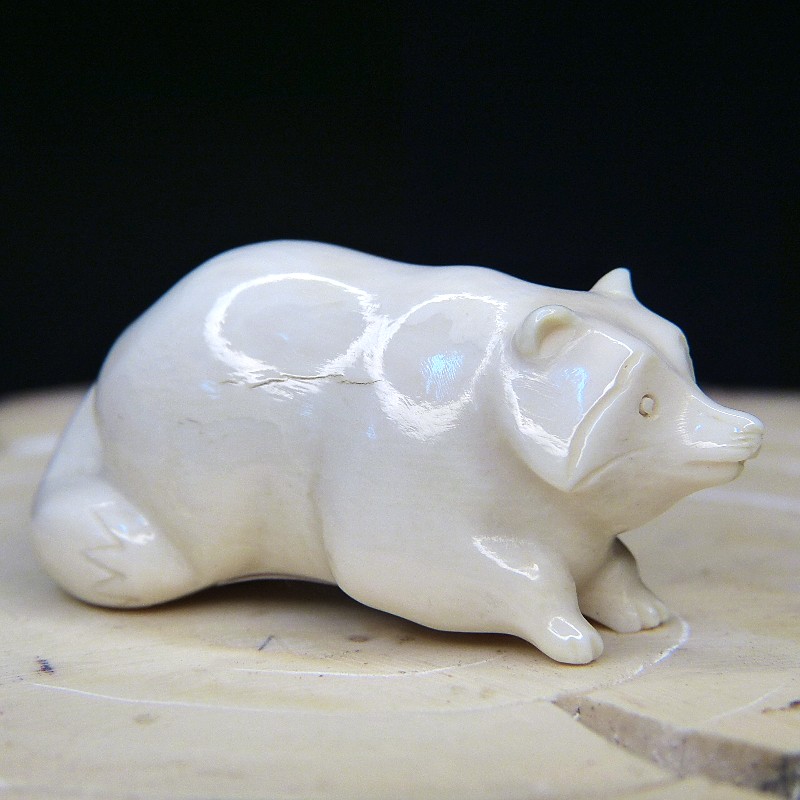 Kleiner Waschbär aus hellem Mammutelfenbein mit einer Länge von ca.48mm.