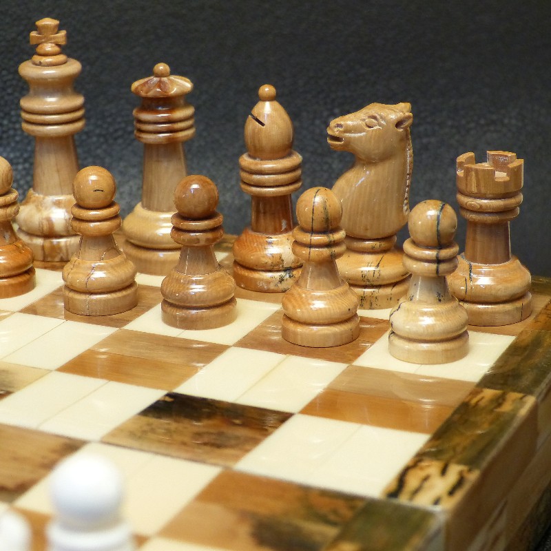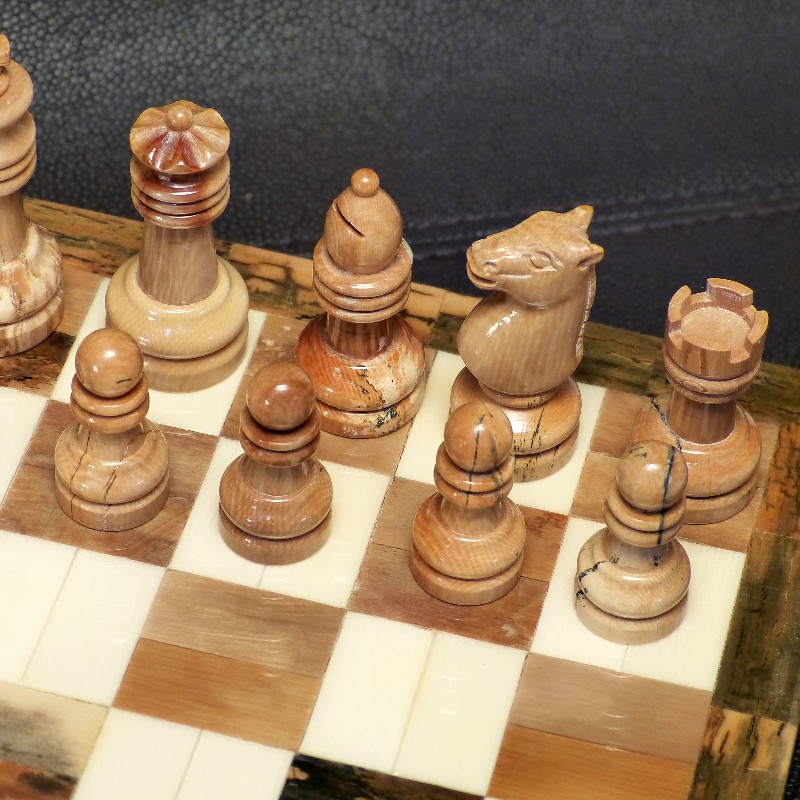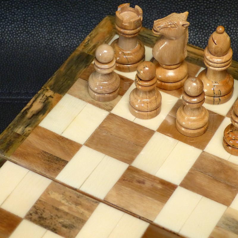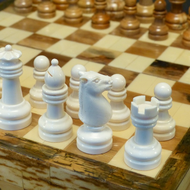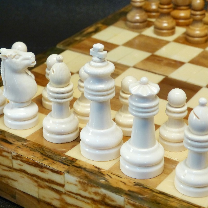 Edles Schachspiel aus hellem und braunem Mammut-Elfenbein wie man es nur selten findet.
